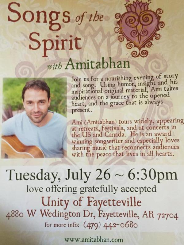 Ami (Amitabhan) has shares his music at retreats and events with well-known spiritual teachers including Matthew Fox, Adyashanti, Gangaji, Martha Creek and at concerts throughout the US and into Canada. He tours widely, often playing up to 150 shows per year.